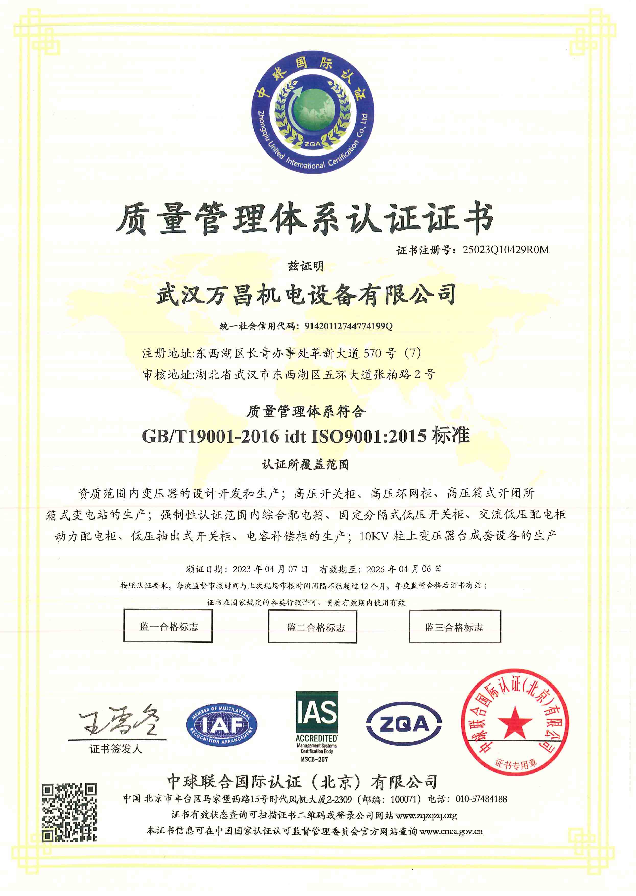 質量管理體系認證證書